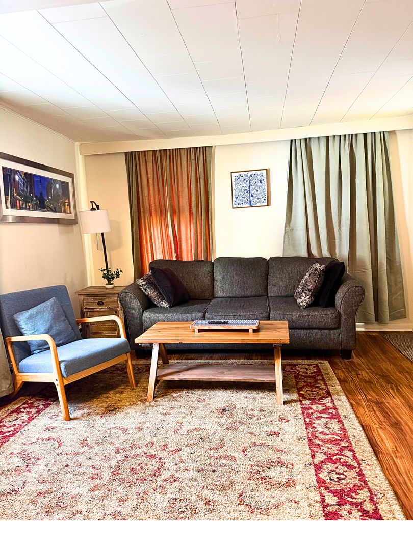 Ideal for business travelers, this fully furnished 1-bedroom apartment offers a comfortable and efficient stay. The unit features a cozy living area with a smart TV, a dining/work space, and a well-equipped kitchenette for short- or mid-term stays.